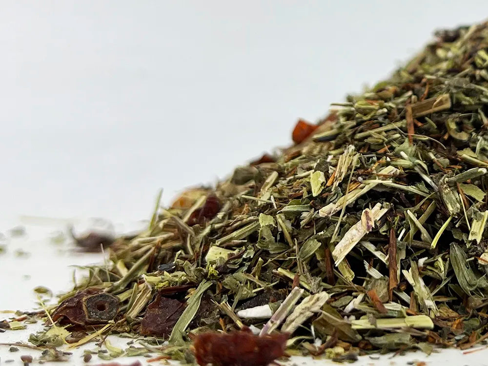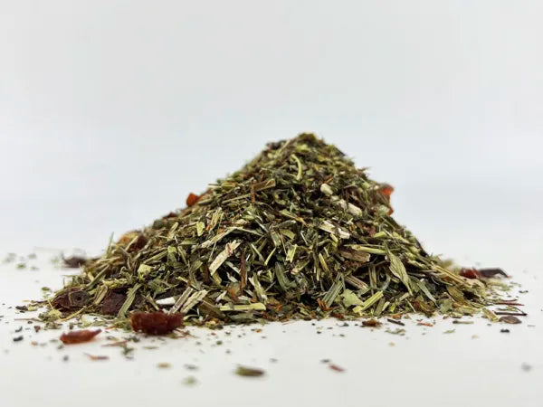 Opis: Liście wiciokrzewu, czerwony rooibos, owoc róży, przywrotnik pospolity (alchemia). Zalecane spożycie: 1-2 razy dziennie. (Przed wprowadzeniem jakichkolwiek zmian w stylu życia należy skonsultować się z lekarzem). Deklaracja wartości odżywczych na 100 ml: