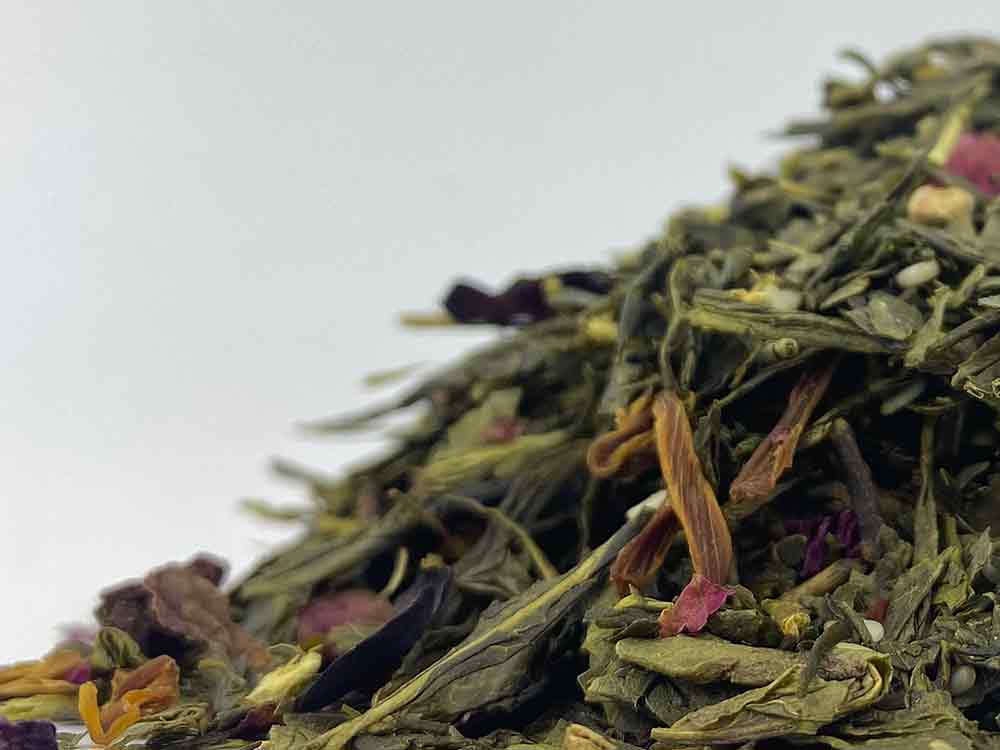 Opis: Sencha, Bancha, Kukicha, sezam, łodygi bambusa, jagody schizandry (dzikie czerwone jagody), imbir, róża, aromat. Wartość odżywcza na 100 ml: