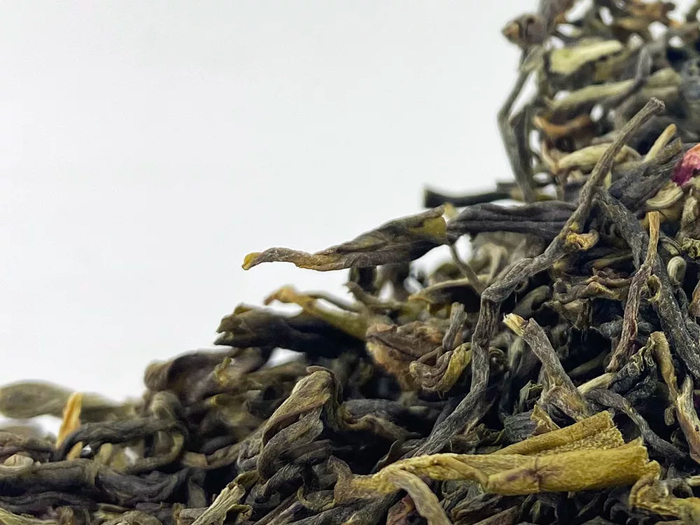 Opis Pochodząca z chińskiej prowincji Fujian, herbata ta jest wzbogacana świeżymi różami podczas produkcji. Jej nazwa pochodzi od kształtu suszonych liści, które przypominają małpią stopę z białym futrem. Brązowo-zielone liście ze srebrnymi brzegami subtelnie uzupełniają różowe płatki róż, którymi jest aromatyzowana. Wartość odżywcza na 100 ml: Energia >0,1 kJ / >0,1 kcal. Tłuszcz <0,1 g, w tym nasycone <0,1 g. Węglowodany <0,1 g, w tym cukry <0,1 g. Białko <0,1 g. Sól <0,1 g.