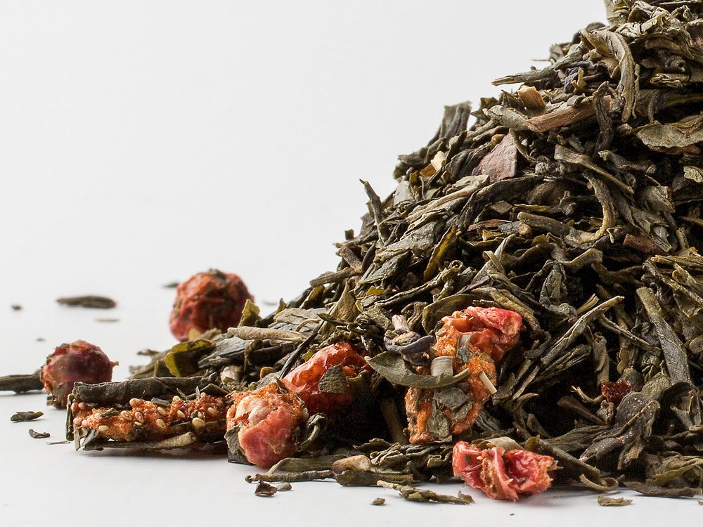 Opis Chińska zielona herbata z suszonymi truskawkami i czerwoną porzeczką. Wartość odżywcza na 100 ml: Energia >0,1 kJ / >0,1 kcal. Tłuszcz <0,1 g, w tym nasycone <0,1 g. Węglowodany <0,1 g, w tym cukry <0,1 g. Białko <0,1 g. Sól <0,1 g.